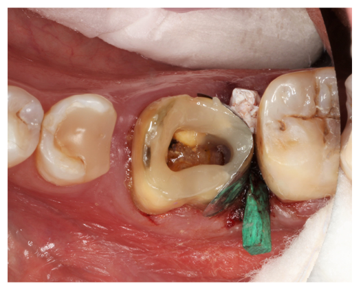 Ein zweizeitiges Vorgehen ist in der Praxis häufig ein pragmatischer Weg, um unter Umständen im nächsten Schritt doch adhäsiv zu versorgen. Gerade im Bereich subgingivaler kariöser Läsionen oder nach traumatischen Kronen-Wurzel-Frakturen kommt es in der Regel durch eine Schädigung und/oder Inflammation der Gingiva zu vermehrten Blutungen. Wenn die initiale Situation keine kontaminationsfreie Restauration zulässt, kann zunächst eine provisorische Versorgung, z.B. aus einem Glasionomerzement, eingesetzt werden, um eine Abheilung der angrenzenden Gewebe herbeizuführen. Dieses Vorgehen erleichtert in Einzelfällen das definitive Restaurieren erheblich. Wichtig ist allerdings bei der zweiten Sitzung auf eine atraumatische Entfernung oder Reduktion der provisorischen Versorgung zu achten, da sonst erneut mit Blutungen zur rechnen ist, die ggf. eine erneute Blutstillung erfordert. Letztlich gilt: jede klinische Situation und ihre Risiken müssen immer individuell bewertet werden. Der Zahnerhalt darf dabei jedoch nie vorschnell ausgeschlossen werden.